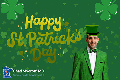 Dr. Chad Myeroff, Shoulder and Elbow Specialist, wishes you a festive and healthy St. Patrick's Day! Whether you're recovering from an injury or maintaining your active lifestyle, our team is here to keep you moving strong.